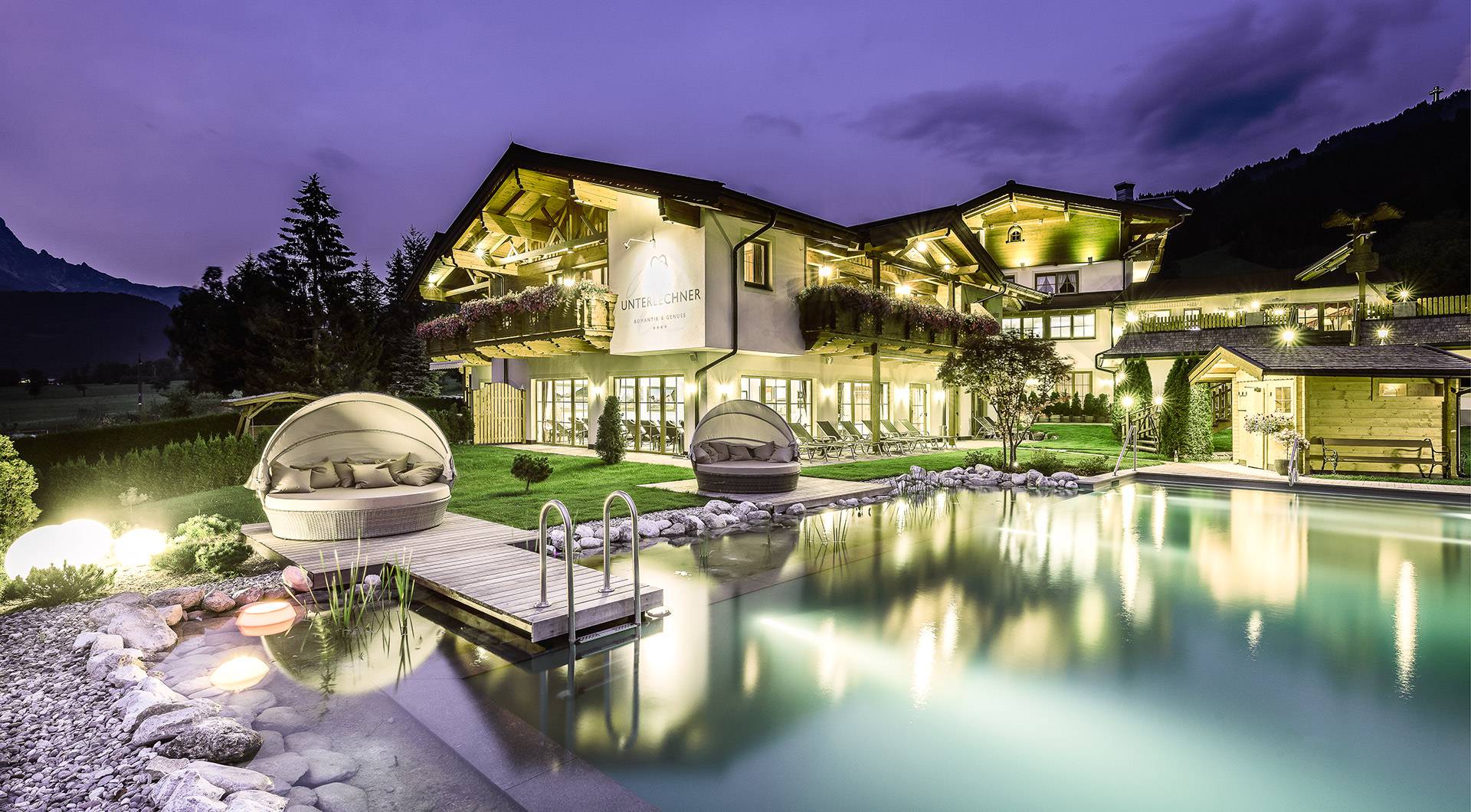 ab € 89,00 AngeboteVerbringen Sie einen Erwachsenenurlaub der Extraklasse im 4-Sterne Luxushotel Unterlechner inmitten der Kitzbüheler Alpen. Kinderfreier Urlaub im Wellnesshotel mit eigenem Restaurant!